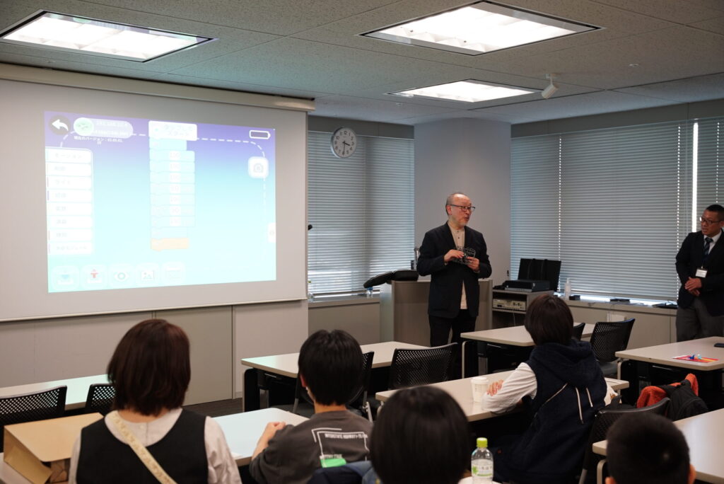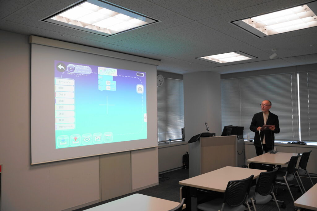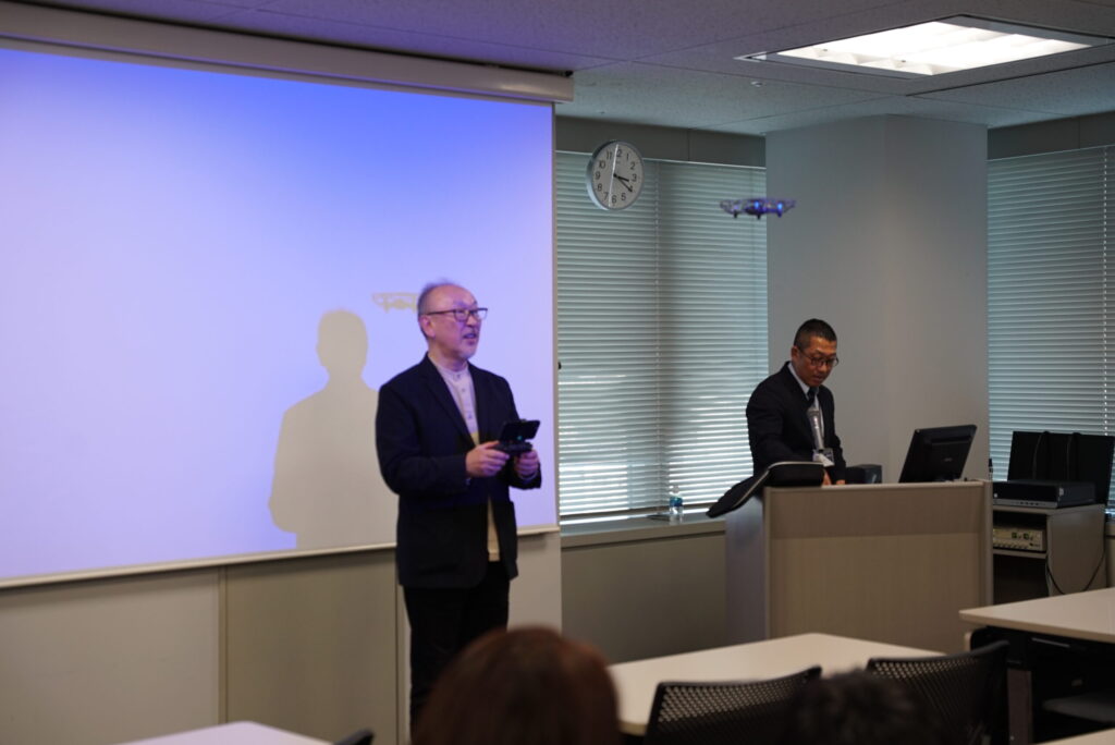 また、弊社よりプログラミングを使ったドローンの実演もいたしました。